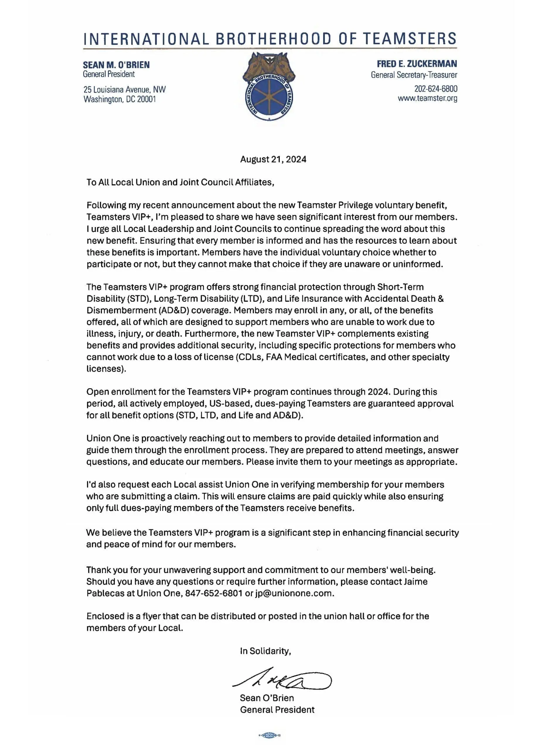 Teamster Privilege Announcement